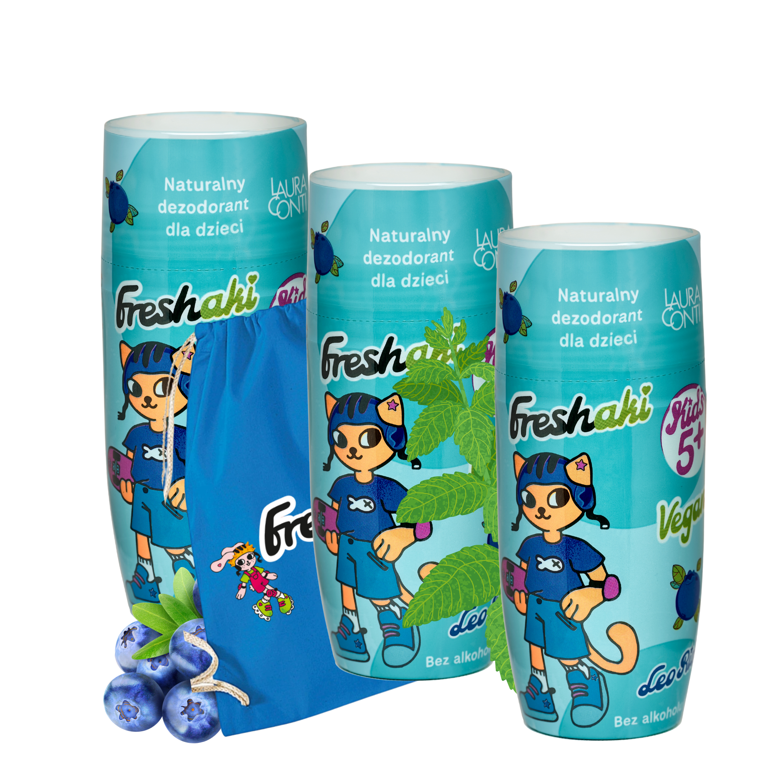 Naturalny dezodorant w kulce dla dzieci Freshaki, Leo Rider, Mint Bluberry, 50 ml, 3-pak WOREK GRATIS